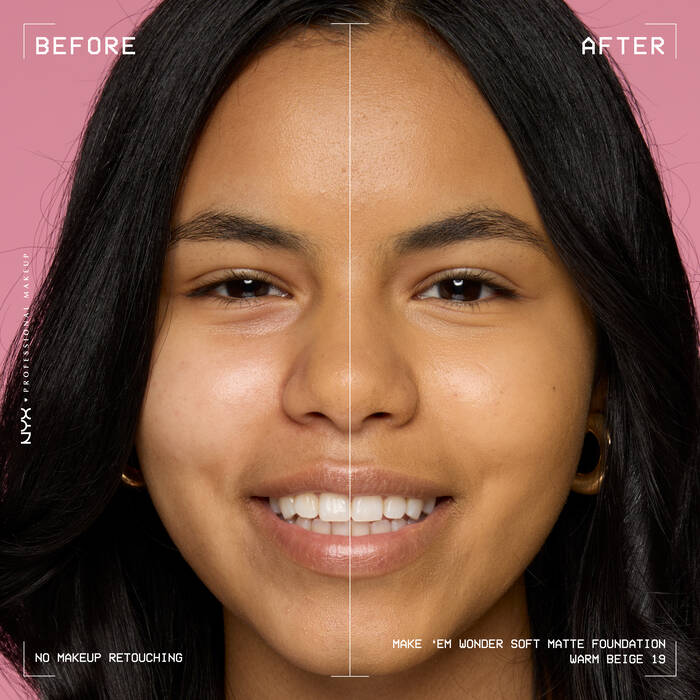 Meet your new foundation essential: Make ’Em Wonder™ Soft Matte Foundation, a skincare-infused soft matte foundation that delivers pro-level coverage with a real-skin finish. Infused with Vitamin C from Guarana Seed Extract and Hyaluronic Acid, this hydrating foundation brightens, smooths, and perfects while feeling weightless on skin. The buildable formula blends seamlessly for a flawless, soft-matte look that lasts up to 24 hours with fade, transfer, sweat, and water resistance for all-day shine control. Available in 45 true-to-skin, undetectable shades, it enhances your complexion without masking your natural beauty.