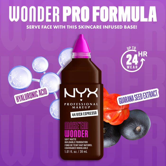 "NYX Make ‘Em Wonder Soft Matte Buildable Foundation - 44 Rich Espresso"